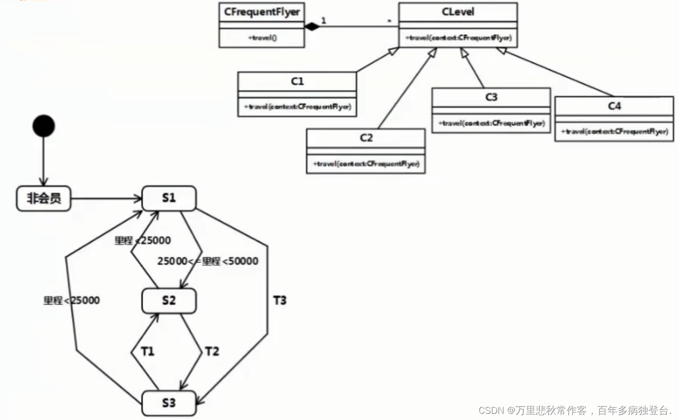 计算飞行里程数,根据里程数判断是否需要调整会员级别(跳转到不同的状态)。