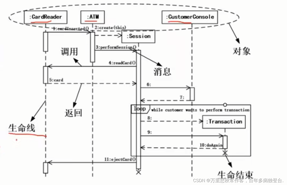 - 顺序图是动态图,表现的是对象之间的交互关系。