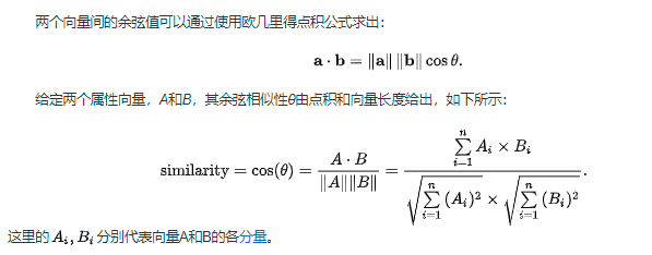 要求出他们得余弦相似度,需要先求出两者得模。用两者的乘积 除以两者各自的模