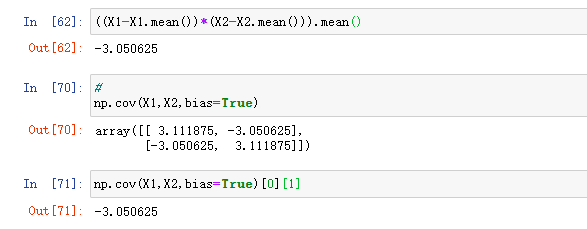 (X0 - X0.mean() ) *(X1-X1.mean())/X0.size #X0,X1的size(形状)是一样大的