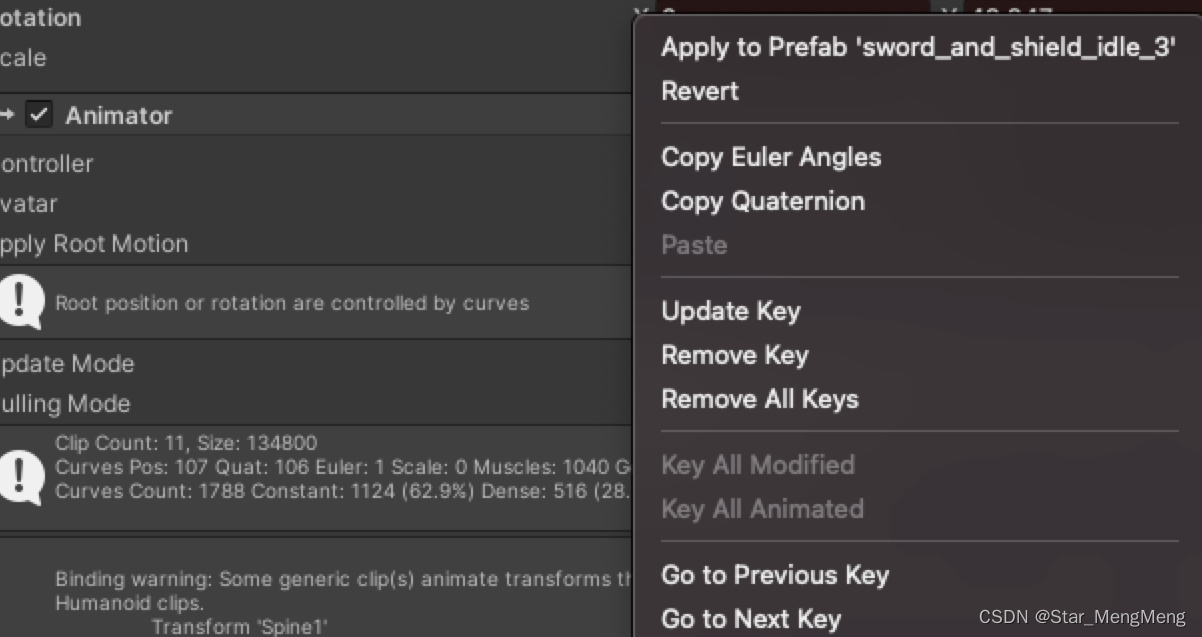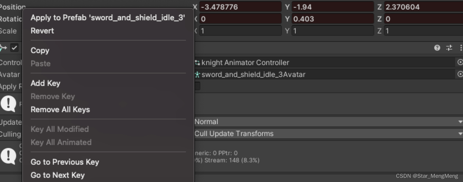 Si vous modifiez une animation enregistrée ,Vous pouvez choisirUpdate Key